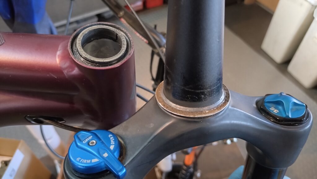 日頃から、しっかりと水洗いでキレイな状態をが保たれておりますが、1年以上走ったバイクはヘッドチューブ内部のベアリングが、グリス枯渇状態により薄っすらと腐食が始まりそうな状態でした......。