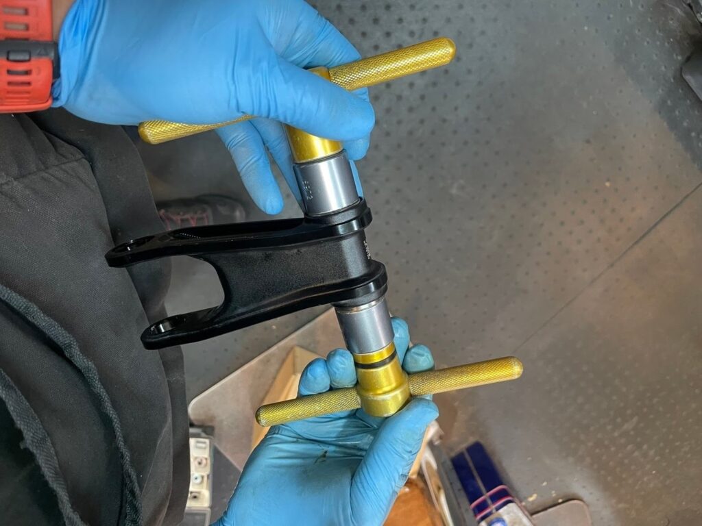 ストロークの際に異音がする、以前よりも動きが鈍く感じるといった症状は、ベアリングの劣化やグリス切れのサインであることが多く、そのまま使用を続けるとフレームやリンク部品へのダメージにつながる可能性もあります。