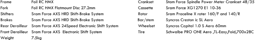 フレームは同じですが、コンポーネントがSram Force AXS。