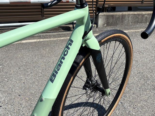また、太めのタイヤに対応するクリアランスが確保されているため、30C前後のロード寄りセッティングから、40Cクラスのグラベルタイヤまで用途に応じて使い分けが可能です。路面状況や走り方に合わせてタイヤを変えるのも、このバイクを乗るの楽しみです。