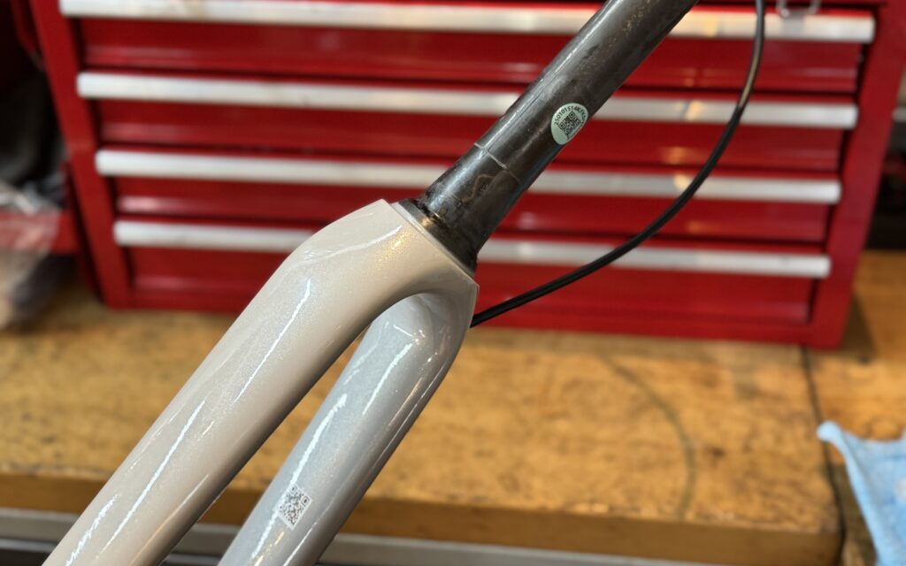 ALLEZのフロントフォークはステアリングコラム部分に至るまで全てカーボン製。