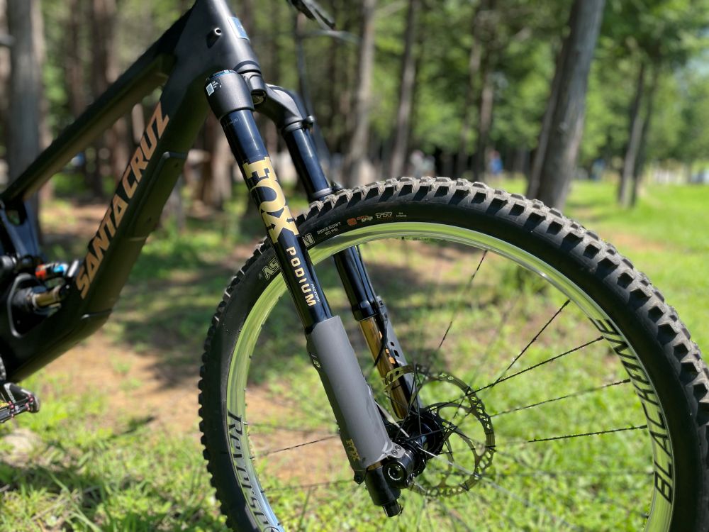 フロントには、剛性・安定感・制動力すべてを兼ね備えたFOX PODIUMスペックをインストール。荒れたロックセクションやハイスピードのギャップも、突き進める安心感。初期の動きはまさにFOXフォークのスムーズな動き、それが中間域まで続いていると思ったら、そのまましっかりストローク後半までいってる素晴らしい動き。だからFOXはやめられない。