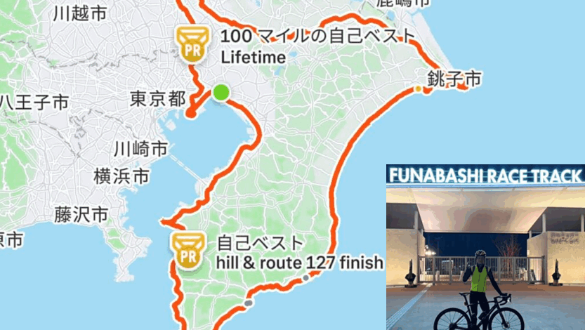 バイクを車に積んで千葉へ向かい、スタート&ゴールは「船橋」に設定。