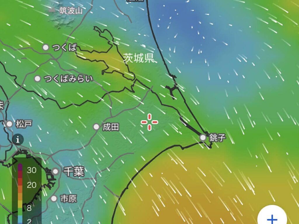 北東の風、約5m/s。完全な向かい風。